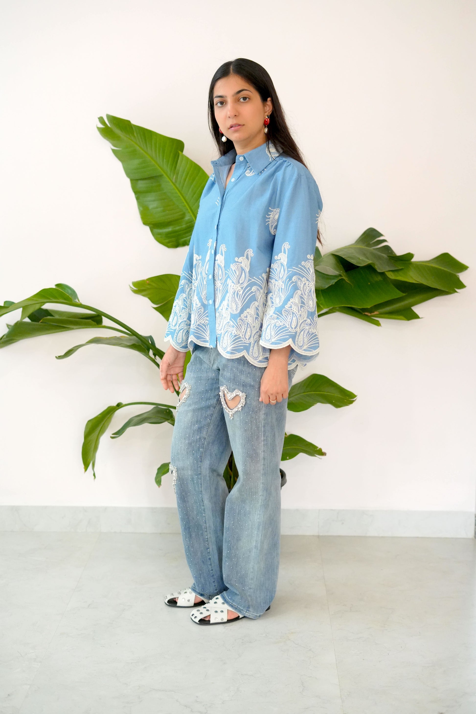 Elevate your casual style with this sky blue Bali Embroidered Top — inspired by island charm and effortless elegance. 🌿🌊