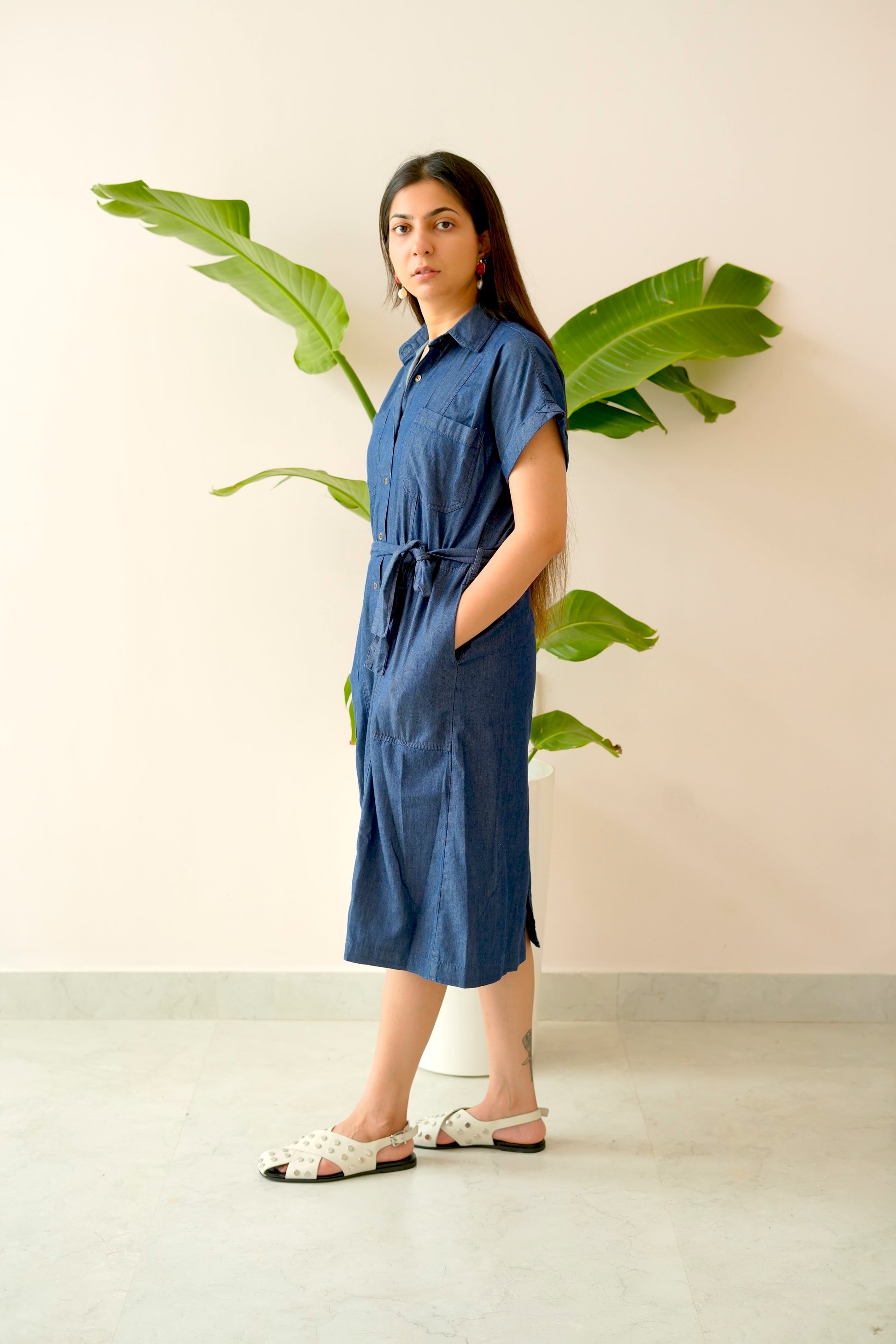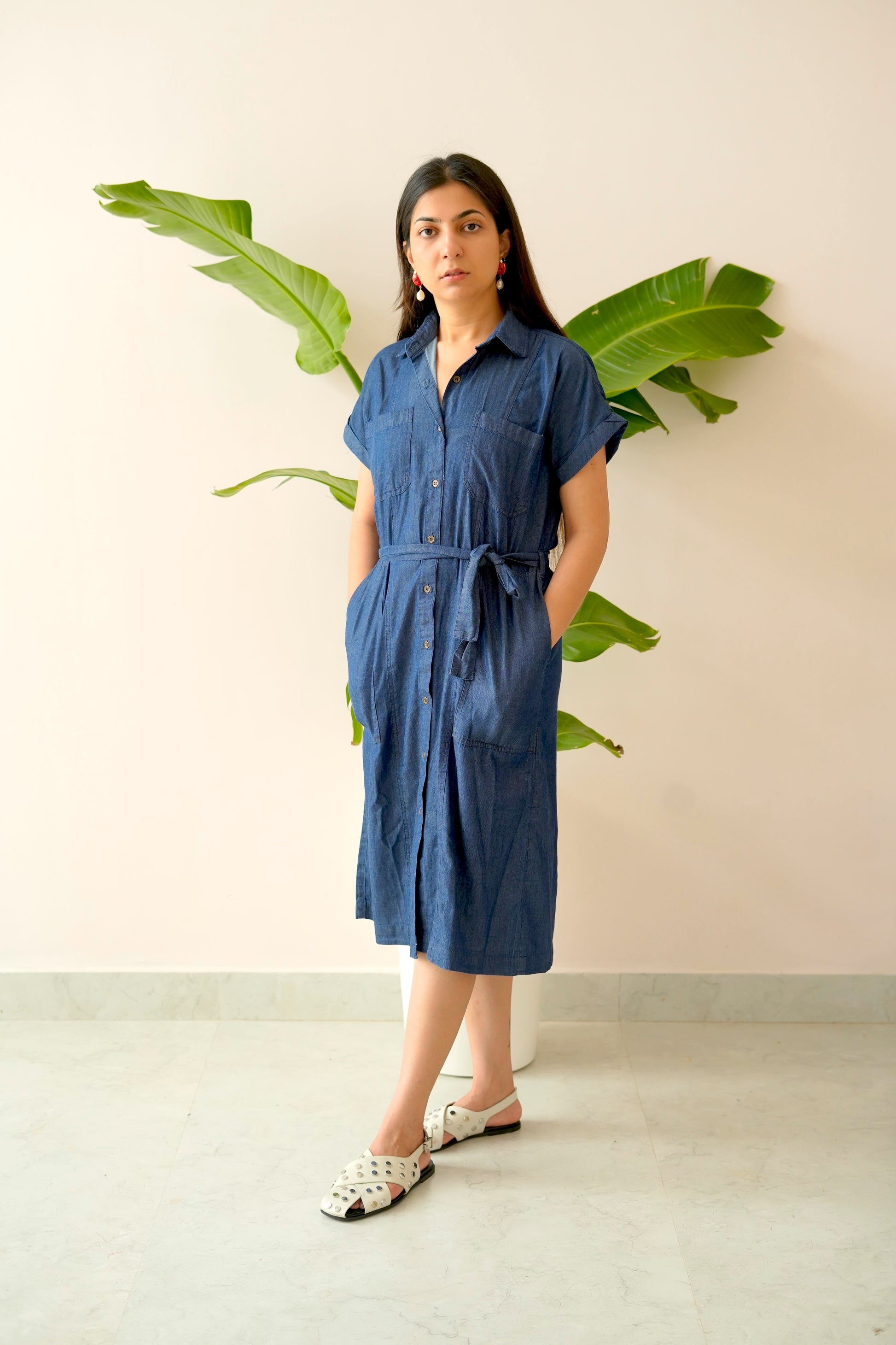 Classic meets contemporary in the Blue Maharani Dress – your go-to piece for effortless elegance. Crafted in soft, breathable denim-like cotton, this shirt-style midi dress channels regal ease with modern minimalism.
