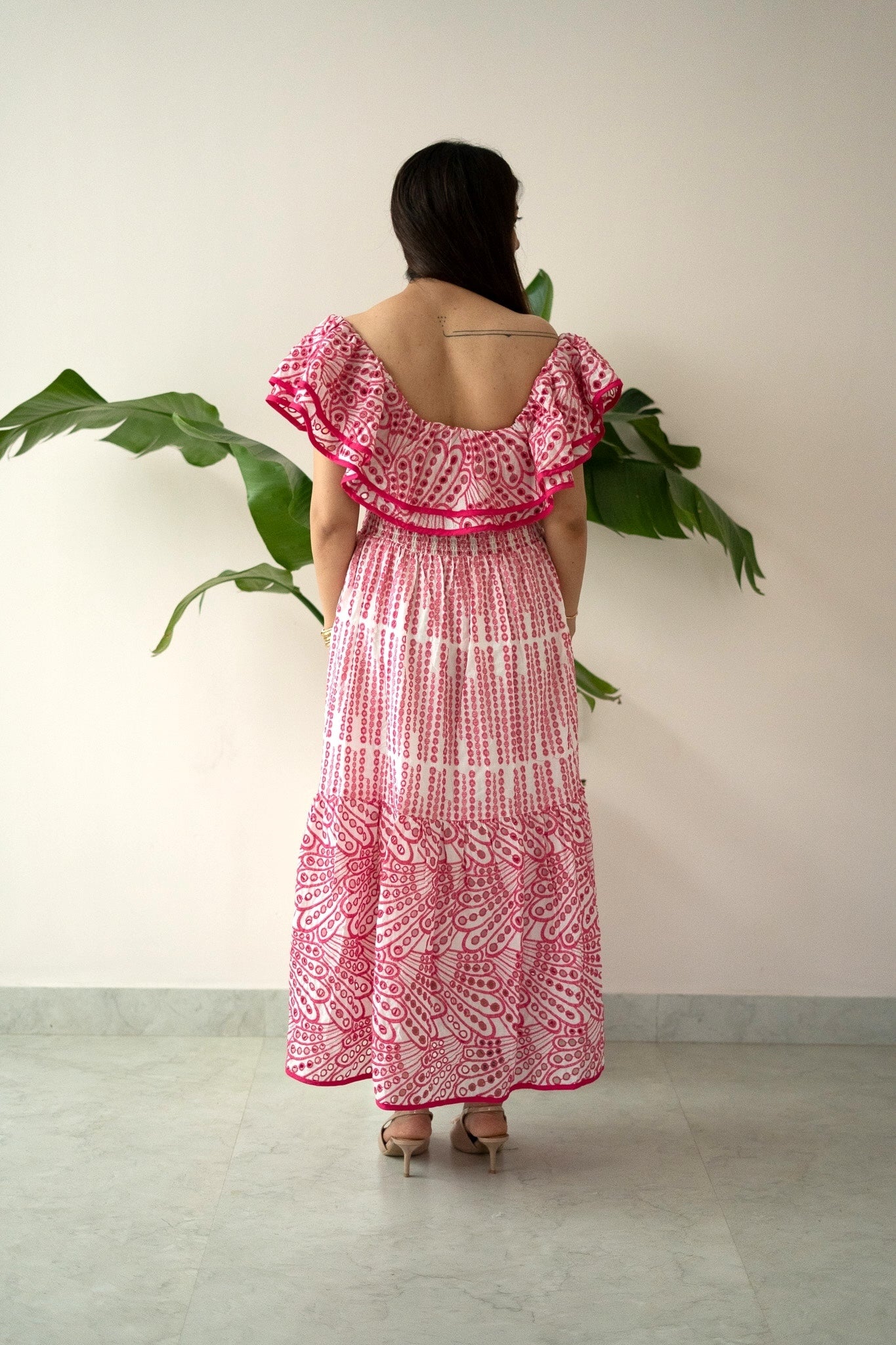 Radiate playful elegance with our “Cauliflower” dress — a vibrant fusion of bohemian spirit and modern femininity. Available in bold hues of fuchsia pink and cobalt blue, this off-shoulder maxi dress is designed to make you stand out effortlessly.