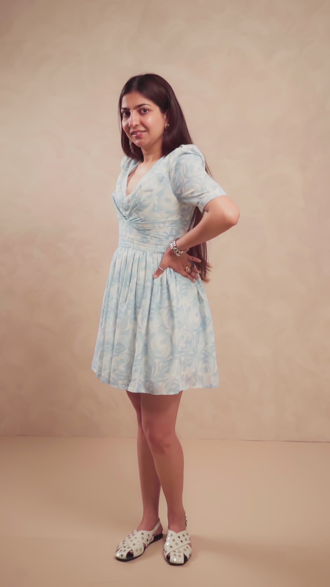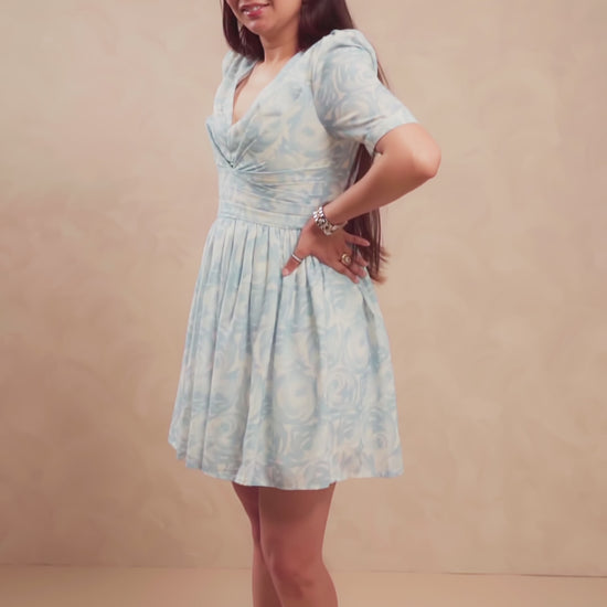 From coffee dates to beach strolls, this short dress with its gathered waist and soft puff sleeves lets you move with comfort and confidence—wrapped in pretty.