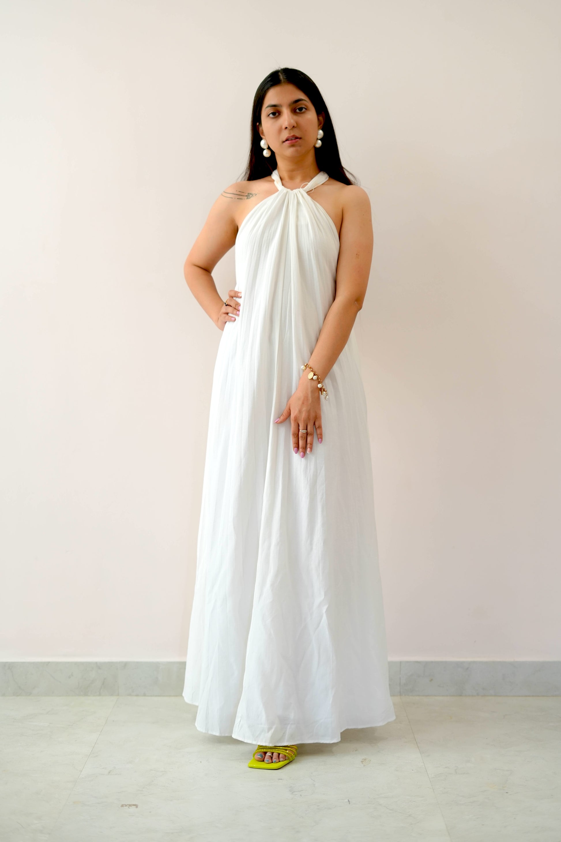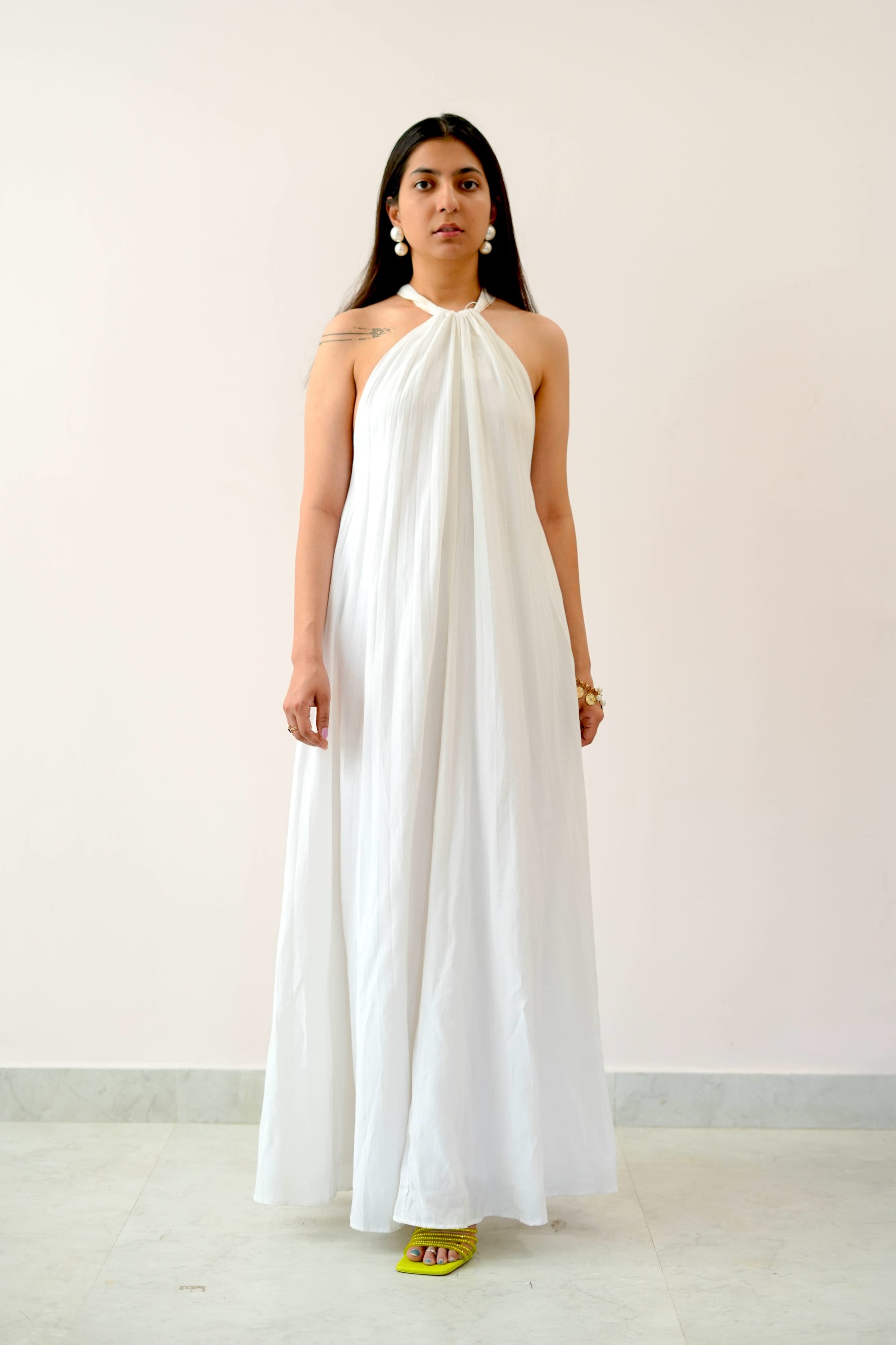 Step into effortless grace with the Cowgirl Dress, a stunning sleeveless maxi dress designed for elegance and comfort. Crafted in a pure white hue, this full-length maxi dress is perfect for summer outings, brunch dates, or even a chic vacation look. Its flowy silhouette ensures a flattering fit, making it a must-have staple in your wardrobe.