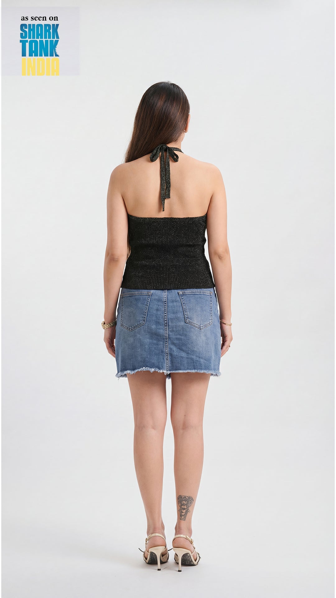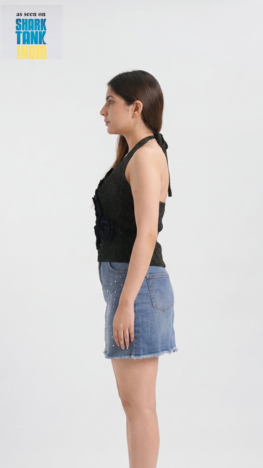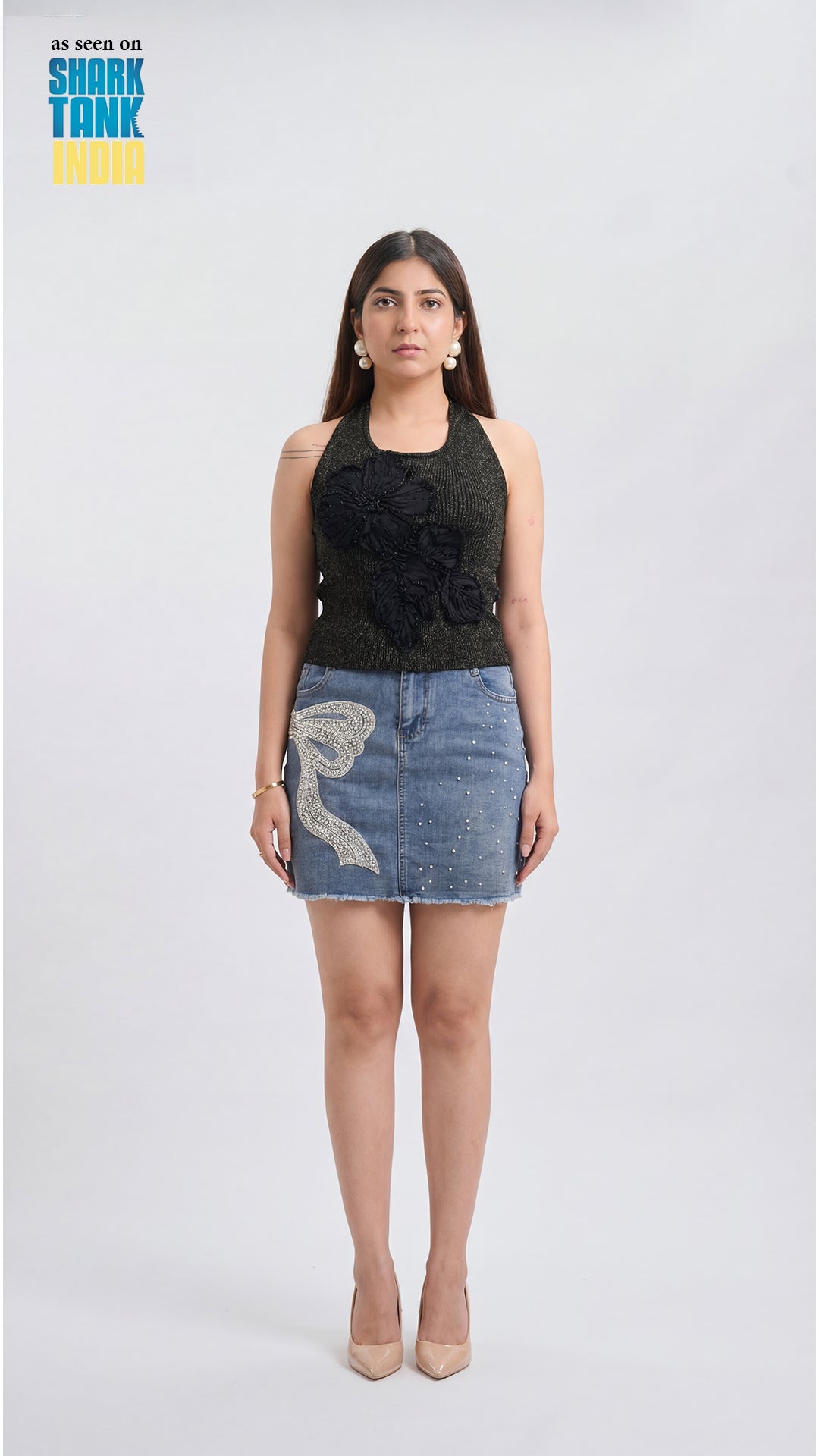 Step into effortless style with Cutie Pie Top, featuring a black floral appliqué pattern. Perfect for party and casual outings, it offers both comfort and elegance.