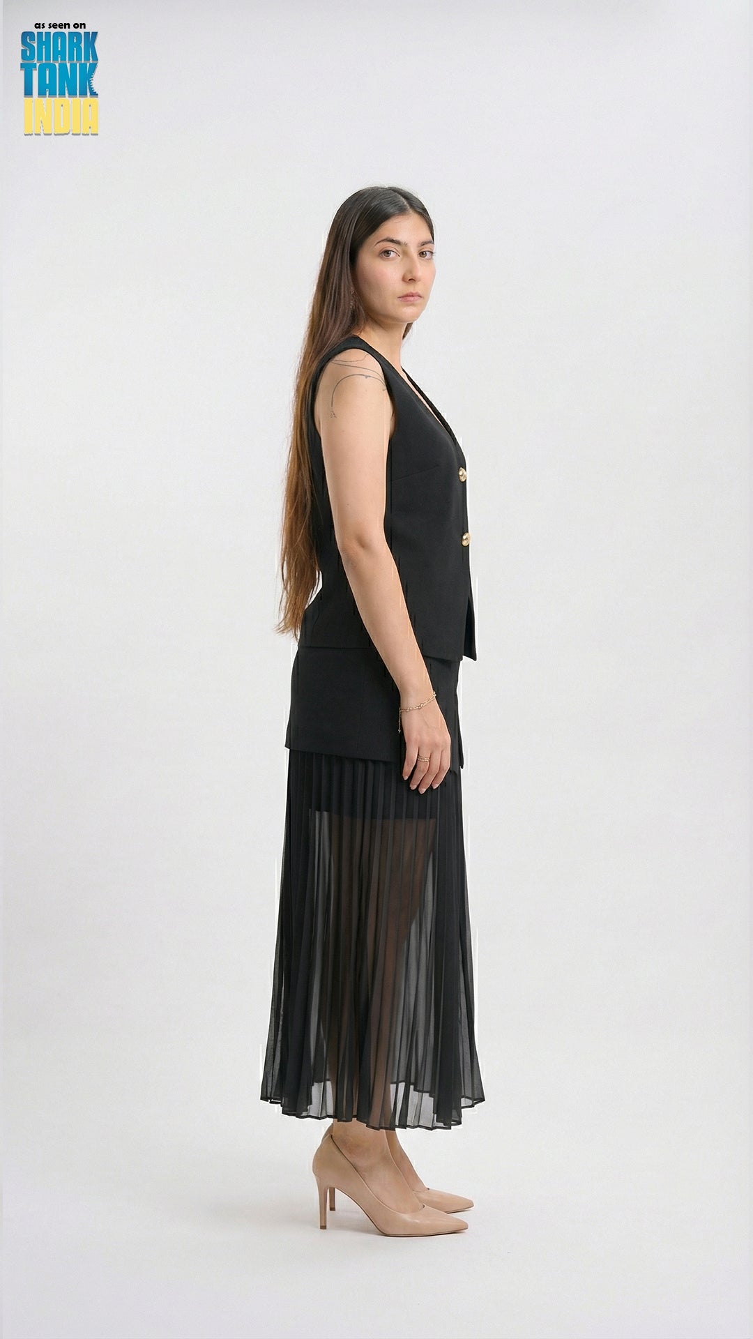 Step into refined sophistication with our FRANSIS Pleated Skirt Co-Ord Set, designed for women who appreciate understated elegance with a modern edge. This beautifully coordinated two-piece set blends structured tailoring with graceful movement — making it perfect for formal gatherings, office wear, festive evenings, or elegant day outings.