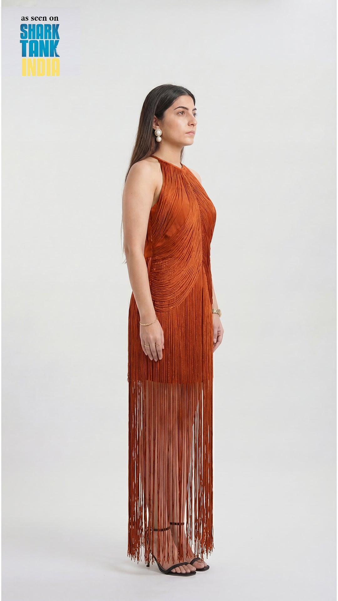 Step into striking sophistication with Fringes, a dress that’s all about movement, drama, and unapologetic confidence. Designed to turn heads, this statement piece features cascading fringe detailing that sways with every step—bringing energy and elegance together in perfect harmony. Available in a rich rust tone and a classic black variant, Fringes is your go-to for nights that call for standout style.