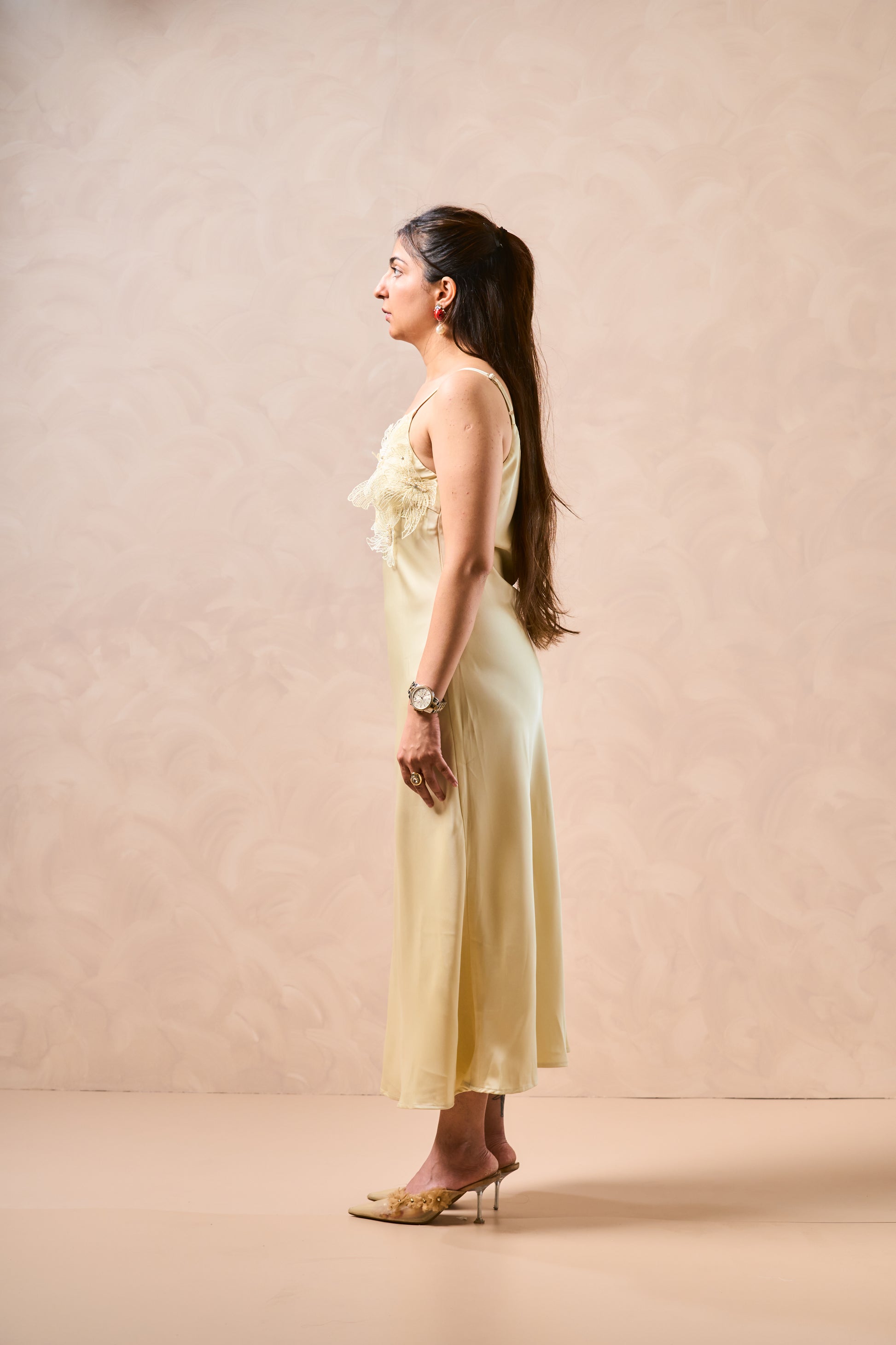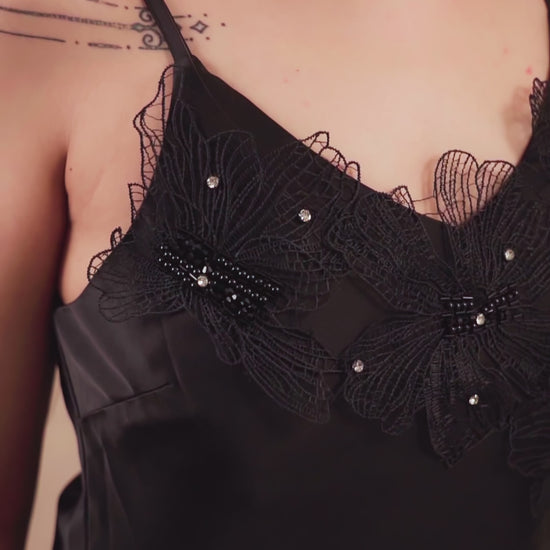 Effortless elegance, now in two statement shades — K-Nude is your go-to slip dress with a luxe touch. Available in Beige for that nude-toned minimalism and Black for bold sophistication, it’s designed with delicate shoulder straps and adorned with intricate 3D butterfly lace applique that adds a whisper of drama.
