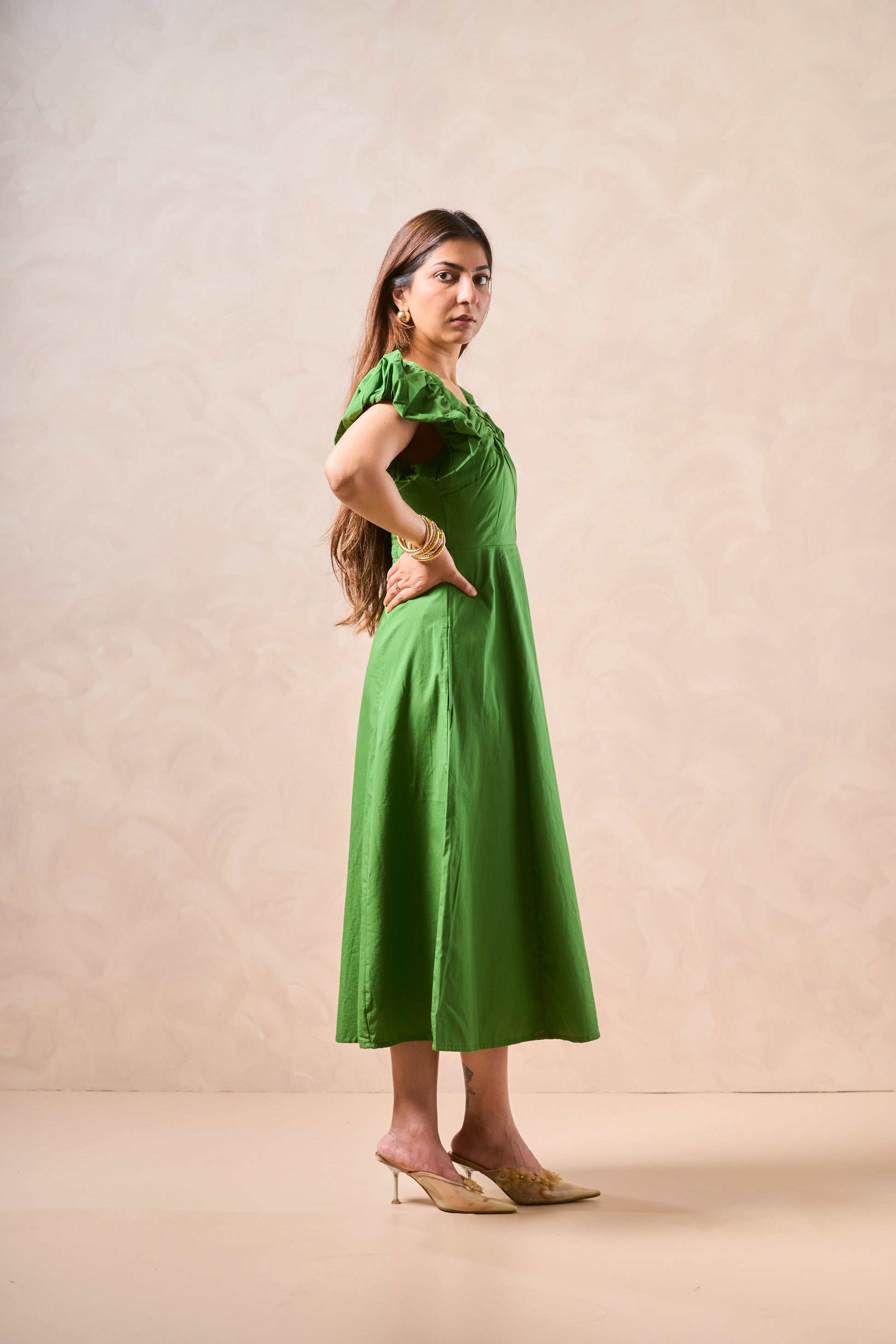 Expertly crafted from premium imported cotton, the Kacha mango bite dress is a versatile and stylish addition to any wardrobe. The bold green color, flattering v-neckline, and elegant puff sleeves make a bold statement. Its solid and long design ensures comfort and versatility for any occasion. Made to last, the Kacha mango bite dress is the perfect choice for those looking for quality and style.